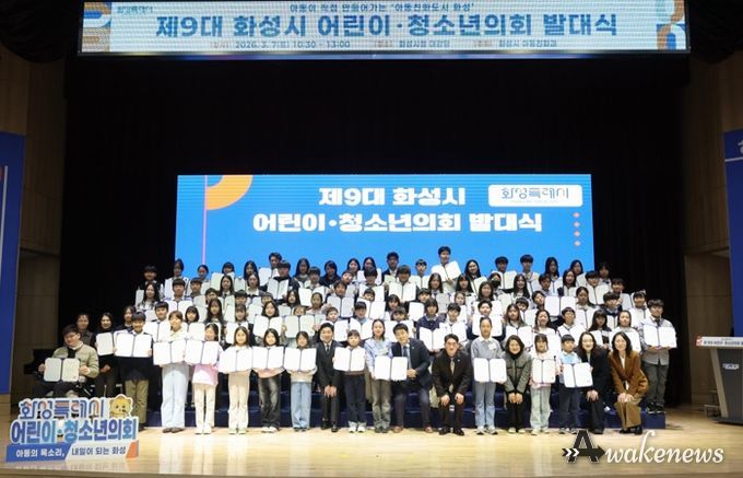 어웨이크뉴스 오경하 기자 | 화성특례시는 지난 7일 시청 대강당에서 제9대 어린이‧청소년의회 발대식을 개최했다.