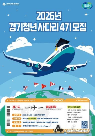 어웨이크뉴스 오경하 기자 | 경기도와 경기도미래세대재단이 경제적 여건 등으로 해외연수 경험을 갖기 힘든 청년에게 해외 대학 연수 기회를 제공하는 ‘경기청년 사다리 프로그램’ 4기 참가자를 오는 26일까지 모집한다.