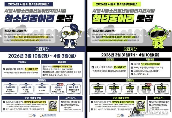 어웨이크뉴스 오경하 기자 | 시흥시와 시흥시청소년청년재단은 지역 청소년과 청년의 자율적인 동아리 활동을 지원하고 건강한 문화 형성을 위해 ‘2026년 시흥시 청소년ㆍ청년 동아리 지원사업’에 참여할 동아리 670개를 모집한다고 밝혔다.