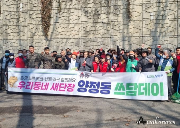 어웨이크뉴스 오경하 기자 | 남양주시는 10일 양정동이 강북아리수정수센터 앞 배수로 일대에서 ‘양정동 쓰담데이’ 환경정화 활동을 실시했다고 밝혔다.