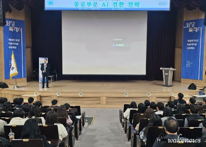 어웨이크뉴스 오경하 기자 | 화성특례시는 10일 시청 대강당에서 인공지능(AI) 기술을 행정 전반에 적극 활용하기 위해 전 직원을 대상으로 AI 전환(AX) 교육을 실시했다.