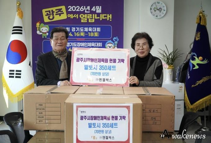 어웨이크뉴스 오경하 기자 | 사회적기업 ㈜엔젤싹스 신영임 대표는 지난 10일 광주시장애인체육회에 발토시 350세트를 기탁했다.