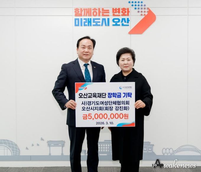 어웨이크뉴스 오경하 기자 | 오산시는 지난 10일 경기도여성단체협의회 오산시지회가 지역 인재 육성을 위해 장학금 500만 원을 기탁했다고 밝혔다.
