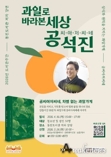어웨이크뉴스 오경하 기자 | 김포시 통진도서관은 제62회 도서관주간을 맞아 오는 4월 16일 오후 3시 '공씨아저씨네, 차별 없는 과일가게'의 저자 공석진 대표를 초청해 ‘과일로 바라본 세상’ 강연을 운영한다.