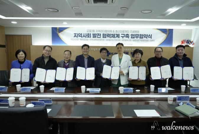 어웨이크뉴스 오경하 기자 | 군포1동 지역리더협의체(주민자치회 등 7개 단체)와 효산의료재단 지샘병원은 지역사회 건강증진 및 상호 협력 강화를 위해 3월 12일 지샘병원에서 업무협약(MOU)을 체결했다.