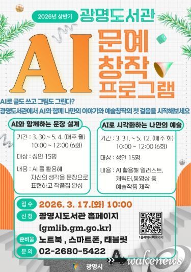어웨이크뉴스 오경하 기자 | 광명시 광명도서관은 시민들을 대상으로 디지털 기술과 예술을 접목한 ‘인공지능(AI) 문예창작 활동 지원 사업을 추진한다.