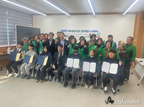 특히 이번 장학금은 청운면 새마을지회가 농촌 폐비닐 수거와 나눔 장터 운영 등 다양한 활동을 통해 마련한 재원으로, 지역사회 나눔의 의미를 더했다.