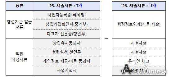행정정보 연결로 사업자등록증, 재무제표 등 행정서류는 자동수집한다. 개인정보제공동의서 등은 온라인 체크로 대체한다. 또한, 기업 심사에 불필요한 서류는 폐지하거나 선정된 기업만 제출한다. 사업계획서 제한 분량도 평균 14장에서 9.4장까지 30% 이상 감축할 계획이다.