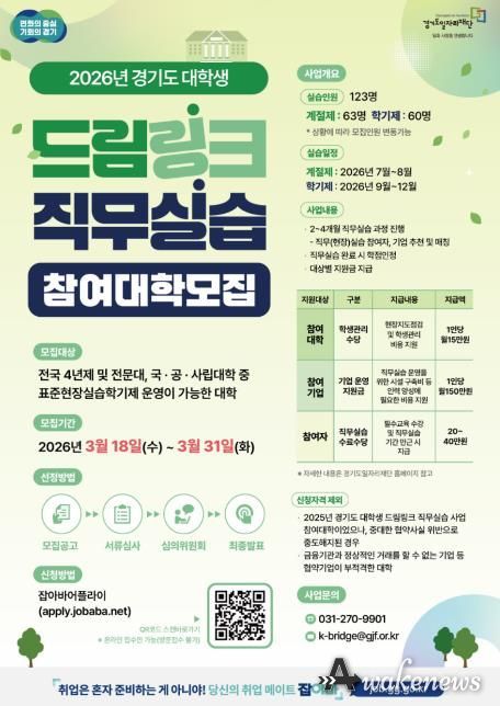 어웨이크뉴스 오경하 기자 | 경기도와 경기도일자리재단이 ‘경기도 대학생 드림링크 직무실습’ 사업에 참여할 15개 협력대학을 31일까지 모집한다.