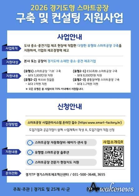 어웨이크뉴스 오경하 기자 | 수원특례시가 경기도와 함께 ‘2026년 경기도형 스마트공장 구축 및 컨설팅 지원사업’ 참여 기업을 공모한다. 경기도 22개 시군 소재 중소제조기업을 지원하는데, 수원시 기업은 4개사를 선정할 예정이다.