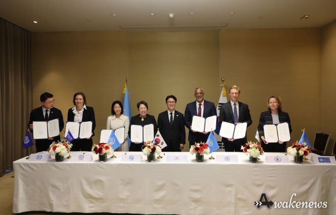 어웨이크뉴스 오경하 기자 | 김민석 국무총리는 현지시간 3월 17일 17시, 스위스 제네바의 인터콘티넨탈 호텔에서, 6개 UN 기구(ILO(국제노동기구), IOM(국제이주기구), ITU(국제전기통신연합), WHO(세계보건기구), WFP(세계식량계획), UNDP(유엔개발계획))와 함께 ‘글로벌 AI Hub’ 협력의향서(Letter Of Intent) 서명식을 개최했다.