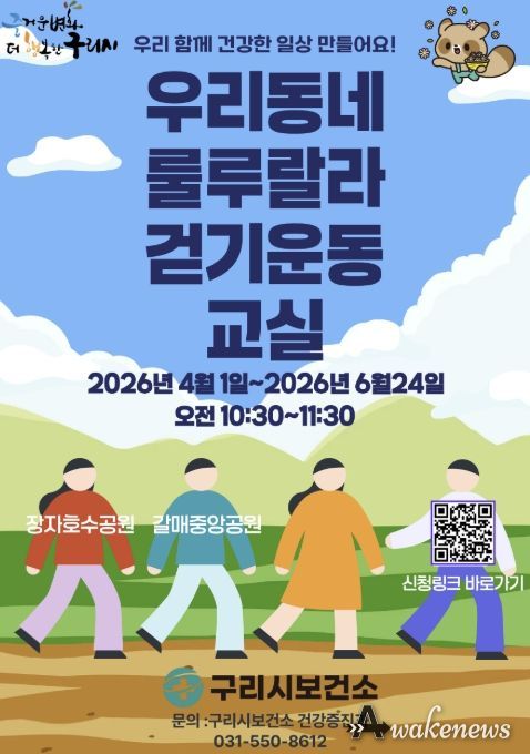 백경현 구리시장은 “걷기운동은 누구나 쉽게 시작할 수 있는 대표적인 신체활동”이라며 “룰루랄라 걷기운동교실을 통해 시민들이 즐겁게 운동하며 건강을 관리할 수 있도록 적극 지원하겠다”고 말했다.