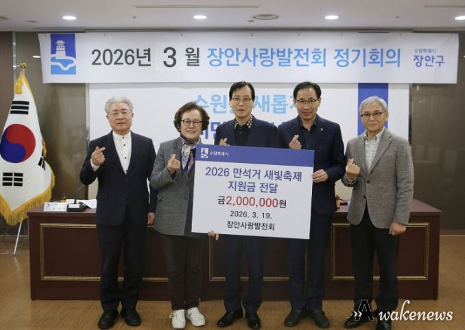 어웨이크뉴스 오경하 기자 | 수원시 장안구 대표 봉사단체 장안사랑발전회가 지난 19일, '2026 만석거 새빛축제'의 성공적인 개최를 응원하며 지원금 200만원을 전달했다.
