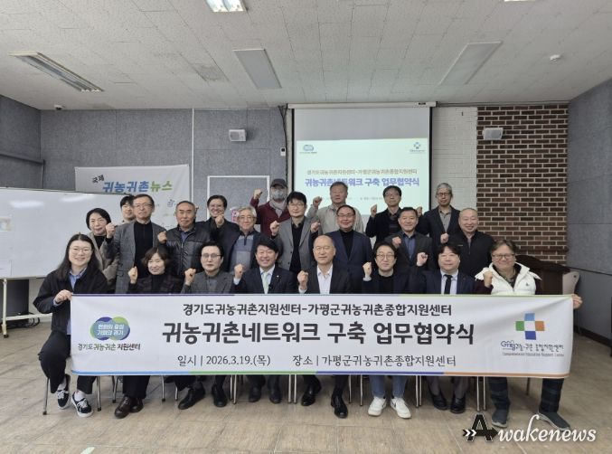 어웨이크뉴스 오경하 기자 | 가평군귀농귀촌종합지원센터와 경기도귀농귀촌지원센터는 19일 가평 교육장에서 귀농귀촌 네트워크 구축을 위한 업무협약(MOU)을 체결했다. 이번 협약은 귀농귀촌 희망자의 안정적인 농촌 정착을 지원하고 경기도 농어촌의 지속 가능한 발전을 도모하기 위해 마련됐다.