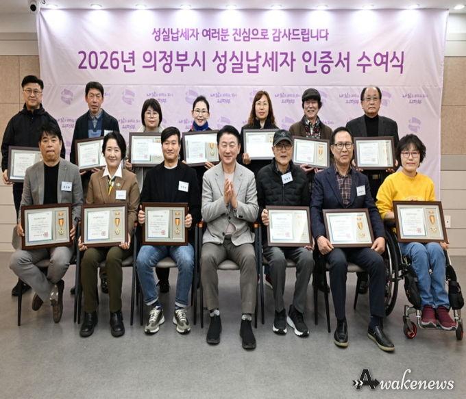 어웨이크뉴스 오경하 기자 | 의정부시는 3월 19일 시청 회룡홀에서 ‘2026년 의정부시 성실납세자 인증서 수여식’을 개최했다.
