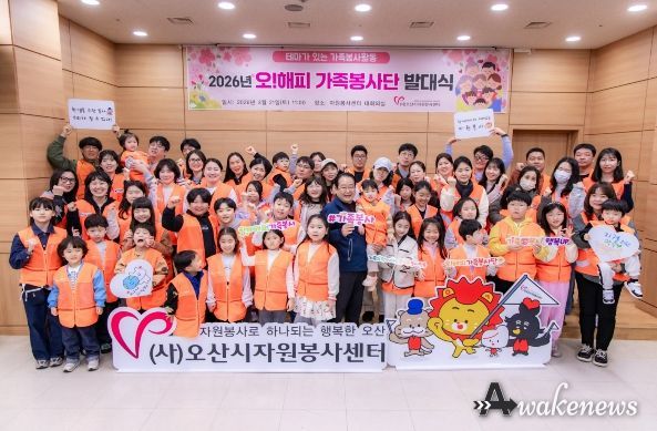 어웨이크뉴스 오경하 기자 | (사)오산시자원봉사센터는 지난 21일 오산시자원봉사센터 1층 대회의실에서 가족 단위 나눔 문화 확산을 위한 ‘2026년 제18기 오! 해피가족봉사단’ 발대식을 개최했다고 밝혔다.