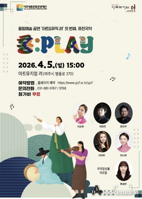 어웨이크뉴스 오경하 기자 | 여주세종문화관광재단은 '아트뮤지엄 려'에서 2026. 4. 5. 오후 3시, 미술전시와 공연예술을 함께 보고 듣는 융합예술 공연 ‘아트&뮤직 려’ 프로그램을 진행한다. 2026년 융합예술 공연에는 여주를 기반으로 활발히 활동하는 국악, 재즈, 클래식, 밴드, 사물연희 등의 공연예술단체들이 참여한다.