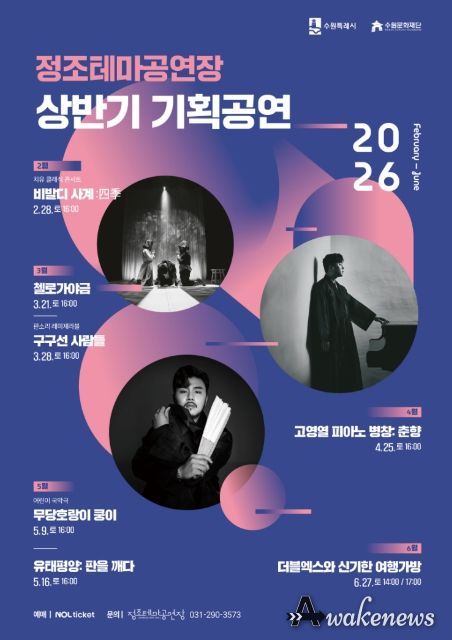 어웨이크뉴스 오경하 기자 | 수원문화재단은 오는 4월부터 6월까지 정조테마공연장에서 전통예술의 현대적 확장을 주제로 한 기획공연 4편을 선보인다.