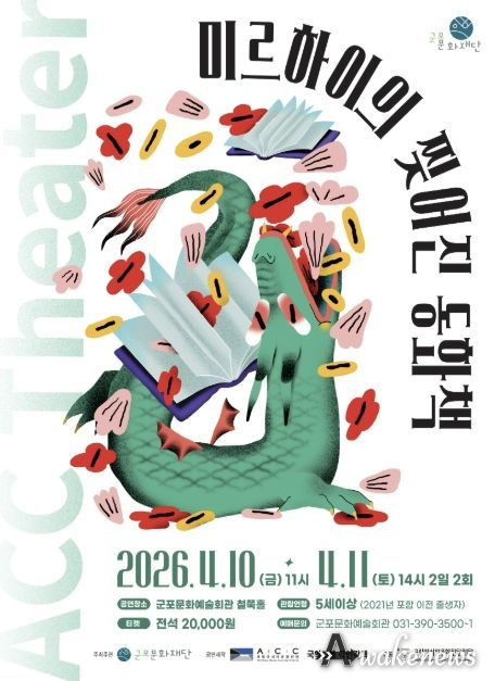 어웨이크뉴스 오경하 기자 | 군포문화재단은 어린이와 가족이 함께 관람할 수 있는 공연 '미르하이의 찢어진 동화책'을 4월 10일~11일 군포문화예술회관 철쭉홀에서 개최한다고 밝혔다. 이번 공연은 2026 국립아시아문화전당재단 어린이 공연 유통 공모사업의 일환으로, 국립아시아문화전당(ACC) 창·제작 어린이 공연을 지역에 소개하기 위해 마련됐다.