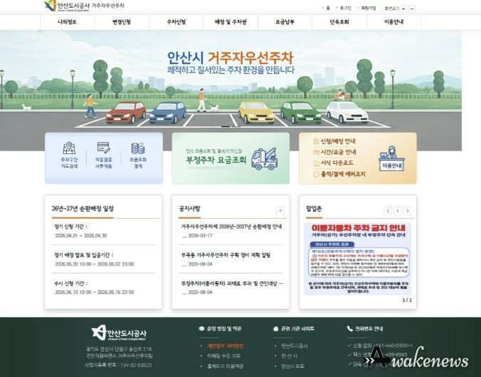 어웨이크뉴스 오경하 기자 | 안산도시공사는 거주자우선주차장 운영 서비스를 전면 개편하고, 내달 1일부터 한 달간 ‘2026년 순환배정’ 신청을 접수한다고 24일 밝혔다.