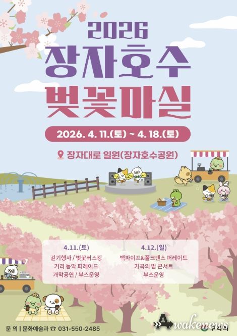 어웨이크뉴스 오경하 기자 | 구리시는 오는 4월 11일부터 18일까지 8일간 장자대로 일원(장자호수공원)에서 ‘2026 장자호수 벚꽃마실’을 개최한다고 밝혔다.