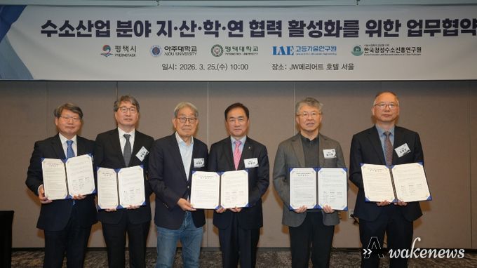 어웨이크뉴스 오경하 기자 | 평택시는 25일, 아주대학교·평택대학교·고등기술연구원·한국청정수소진흥연구원과 '수소산업 분야 지산학연 협력 활성화를 위한 업무협약(MOU)'을 체결했다고 밝혔다.