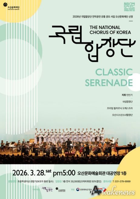 어웨이크뉴스 오경하 기자 | (재)오산문화재단은 오는 28일 오후 5시 오산문화예술회관 대공연장에서 국립합창단의 신작 ‘CLASSIC SERENADE’를 전국 최초로 선보인다.