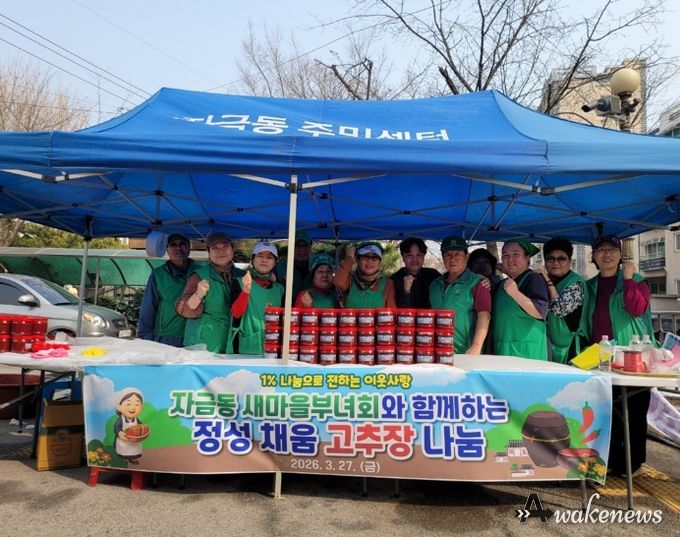 어웨이크뉴스 오경하 기자 | 의정부시 자금동주민센터는 3월 27일 자금동 새마을부녀회가 관내 어려운 이웃들을 위해 고추장 60통을 기탁하며 따뜻한 나눔을 실천했다고 밝혔다.