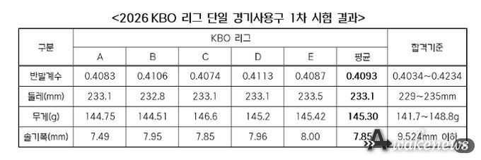 어웨이크뉴스 오경하 기자 | KBO는 3월 30일(월) 2026 신한 SOL KBO 리그 단일 경기사용구의 1차 수시검사 결과를 발표했다.
