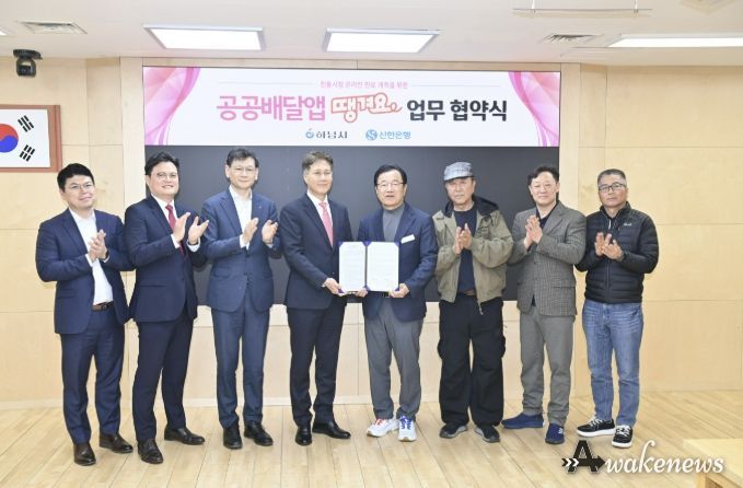 어웨이크뉴스 오경하 기자 | 하남시는 3월 31일 시청 본관 2층 상황실에서 신한은행과 공공배달앱 ‘땡겨요’ 운영을 위한 업무협약을 체결하고, 전통시장 온라인 판로 확대에 본격 나섰다고 밝혔다.
