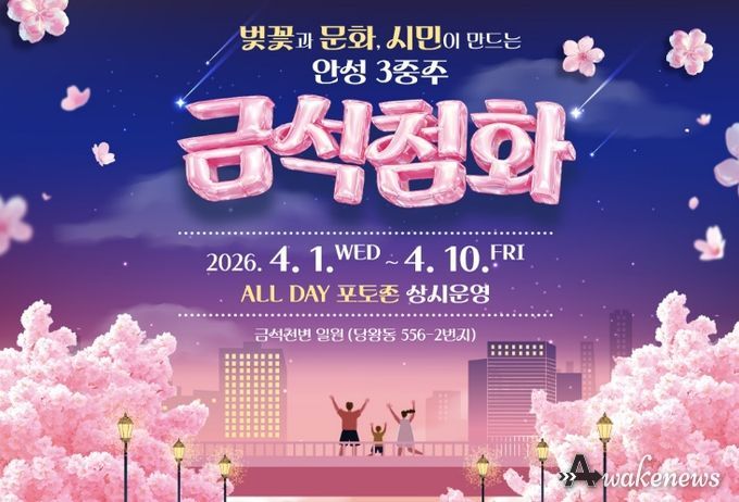 어웨이크뉴스 오경하 기자 | 안성시 안성3동은 벚꽃이 절정을 이루는 개화기를 맞아 오는 4월1일부터 10일까지 열흘간 금석천변 일원(대덕농협 하나로마트~ 비룡초등학교 꿈의 다리)에서 ‘금석첨화’ 벚꽃 포토존을 운영한다고 밝혔다.