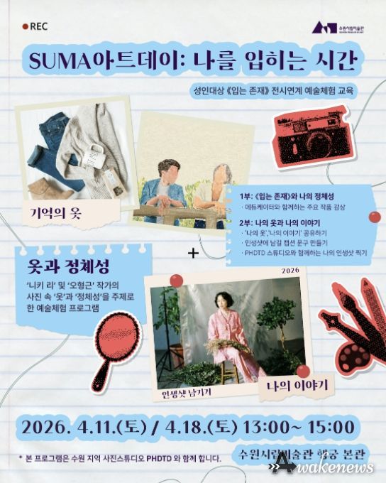 어웨이크뉴스 오경하 기자 | 경기도 수원시립미술관은 성인 대상 예술 체험 프로그램 'SUMA 아트데이: 나를 입히는 시간'을 4월 11일부터 운영하며 참여자를 모집한다.