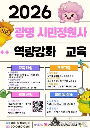 신은철 정원도시과장은 “시민정원사는 정원도시 광명 미래를 일구는 핵심 동력”이라며 “이번 교육으로 시민들이 전문가 역량을 현장에서 마음껏 펼칠 수 있도록 실무 중심 지원을 강화하고, 광명시 전역에 고품격 정원문화를 뿌리내리겠다”고 밝혔다.