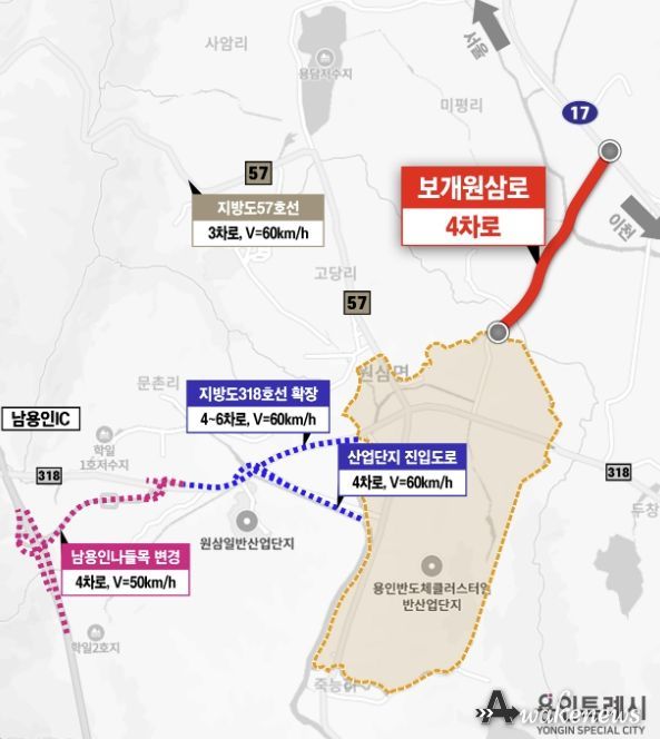 보개원삼로 확장 공사는 SK하이닉스 반도체 팹(fab) 착공에 따른 건설 인력과 공사 차량 유입 증가에 선제적으로 대응하고자 추진됐다.