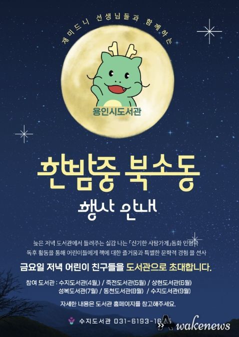 어웨이크뉴스 오경하 기자 | 용인특례시 서부도서관은 수지‧죽전‧상현‧성복‧동천도서관에서 야간 독서문화 프로그램 ‘한밤중 북소동’을 운영한다고 25일 밝혔다.