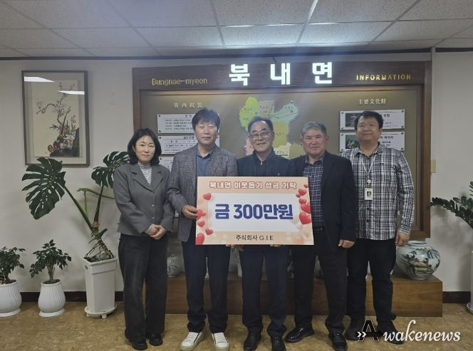 어웨이크뉴스 오경하 기자 | 북내면행정복지센터는 2026년 4월 1일 ㈜G.I.E 홍광표 대표가 지역 내 어려운 이웃을 위해 300만 원을 지정기탁했다고 밝혔다.