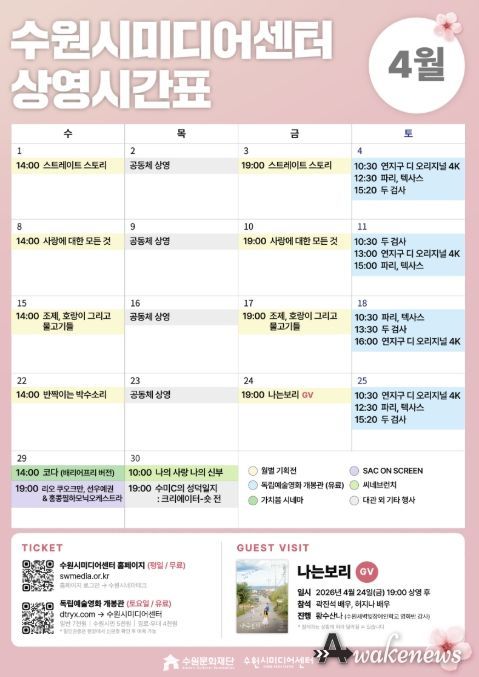 수원시미디어센터 관계자는 “이번 업무협약을 통해 누구나 차별 없이 문화를 접하고 누릴 수 있는 환경을 조성하고자 한다”며, “4월 장애인의 날을 맞아 운영하는 기념 프로그램을 시작으로, 배리어프리 영화 상영을 지속 확대해 나가겠다”고 밝혔다.