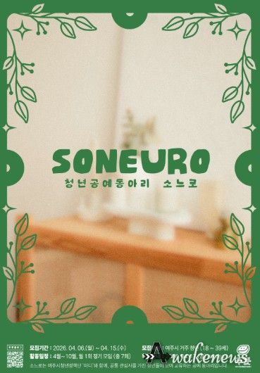 어웨이크뉴스 오경하 기자 | 여주시청년활동지원센터 푸릇은 오는 4월 청년공예동아리 'soneuro(소느로)' 참여자를 모집한다고 밝혔다.
