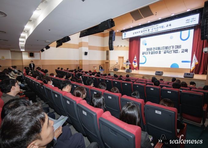 수원시가 2일 시청 대강당에서 ‘제9회 전국동시지방선거 대비 공직자가 알아야 할 공직선거법 교육’을 열었다. 송하경 팔달구 선거관리위원회 지도계장이 공직자들이 자주 묻는 내용을 중심으로 공직선거법을 설명했다.