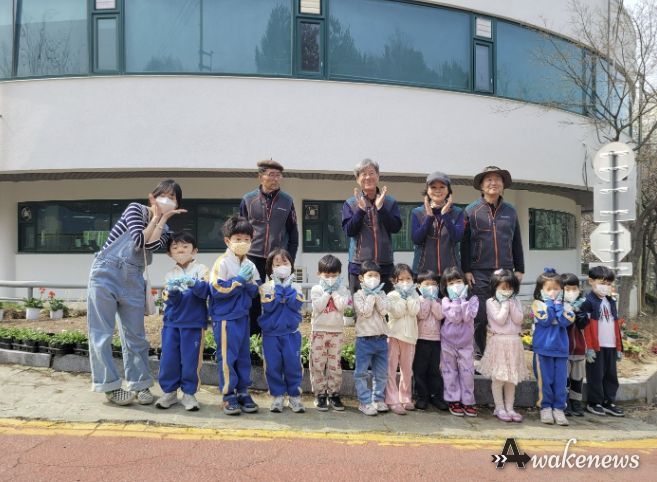 어웨이크뉴스 오경하 기자 | 문원행복마을관리소가 3일, 시립문원어린이집의 어린이 80명을 비롯해 보호자, 교사, 행복마을관리소 지킴이 등 총 90여 명이 참여한 가운데 ‘줍깅(조깅하며 쓰레기 줍기)’ 및 꽃 심기 행사를 실시했다.