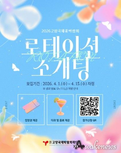어웨이크뉴스 오경하 기자 | 재단법인 고양국제박람회재단은 2026고양국제꽃박람회 기간 중 청춘 남녀를 위해 참여형 프로그램 ‘로테이션 소개팅’을 기획했다.