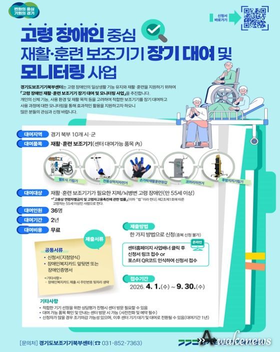 사업 신청은 오는 9월 30일까지 상시 진행되며, 경기도재활공학서비스연구지원센터 누리집이나 배포된 포스터 내 QR코드를 통해 간편하게 온라인으로 접수할 수 있다.