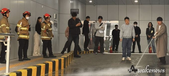 훈련은 화재 발생 시 행동 요령 교육을 시작으로 ▲연기 발생 상황을 가정한 대피 훈련 ▲교육용 소화기 사용 실습 ▲옥내 소화전 살수 실습 순으로 진행됐으며, 참가자들은 실제 화재 상황에 대비한 대응 능력을 체득했다.