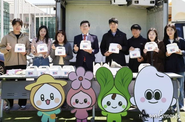 시는 7일 시청 하늘광장에서 ‘로컬푸드 행복장터’와 지역 내 농산물을 이용해 기획한 점심세트 ‘웰치스(Well-being Lunch Box)’를 배부했다.