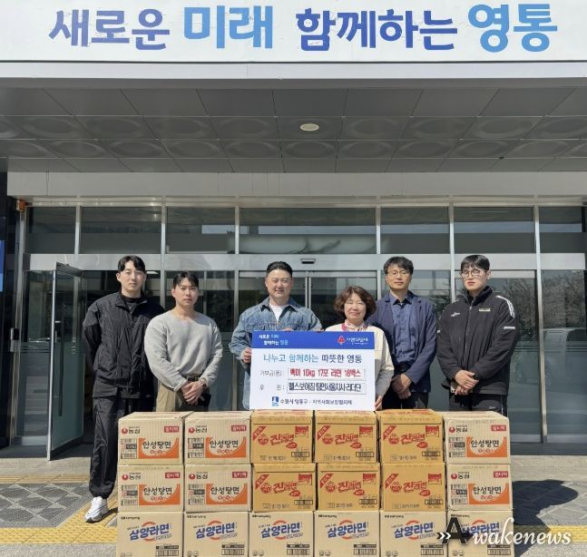 어웨이크뉴스 오경하 기자 | 수원시 영통구는 지난 8일 헬스보이짐 팀인서울지사 리더단이 관내 저소득 가정 및 취약계층을 위해 백미와 라면 등 100만 원 상당의 생필품을 후원했다고 밝혔다.