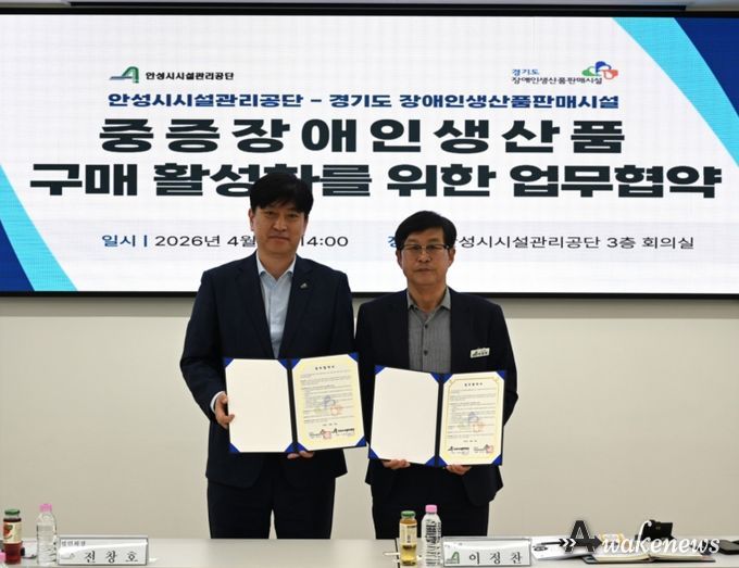 어웨이크뉴스 오경하 기자 | 안성시시설관리공단은 경기도 장애인생산품판매시설과 중증장애인생산품 우선구매 활성화를 위한 업무협약(MOU)을 체결했다고 밝혔다.