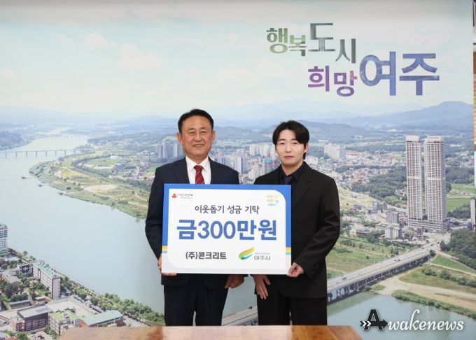 어웨이크뉴스 오경하 기자 | 지난 8일 부석환 ㈜콘크리트 대표는 여주시청을 방문하여 이웃돕기 성금 300만원을 기탁했다.