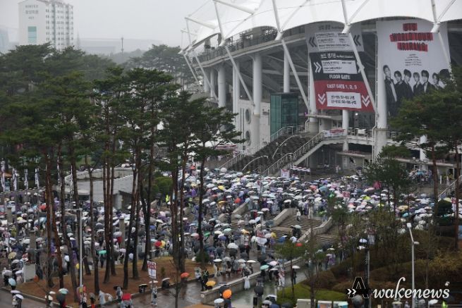 어웨이크뉴스 오경하 기자 | ‘BTS 월드투어 아리랑 in 고양’이 열리는 고양종합운동장, 9일 비가 내리는 궂은 날씨에도 공연장과 인근 상가까지 BTS 콘서트를 즐기기 위해 방문한 국내외 관람객으로 가득찼다.