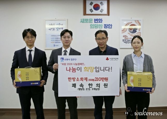 이번 후원은 지역 내 어려운 이웃들의 건강한 일상 지원을 위해 마련됐으며, 기부된 한방소화제는 장안구 내 저소득 취약계층에게 전달될 예정이다.