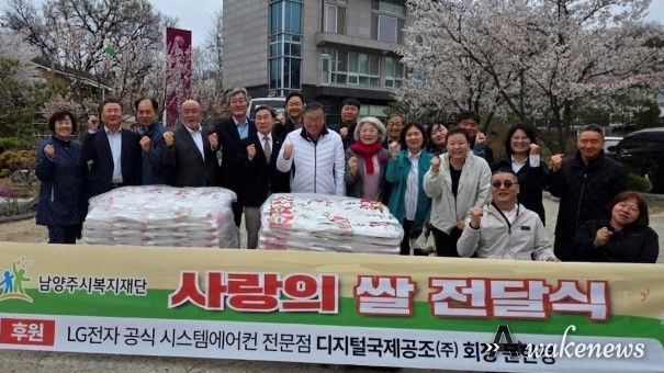 어웨이크뉴스 오경하 기자 | 남양주시는 지난 9일 디지털국제공조(주) 문한경 회장이 지역 내 장애인을 위해 4㎏ 쌀 300포를 남양주시복지재단에 기탁했다고 10일 밝혔다.